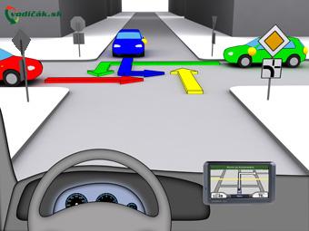 modrého vozidla, pretože prichádza na križovatku po ceste označenej ako hlavná,