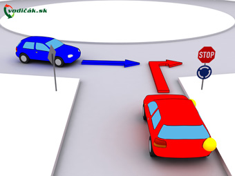 musí dať prednosť v jazde vodičovi červeného vozidla, ktorý prichádza na križovatku sprava,
