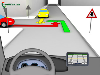 vodič červeného vozidla odbočujúceho vľavo je povinný dať prednosť v jazde protiidúcemu zelenému a žltému vozidlu a električkám idúcim z obidvoch smerov,